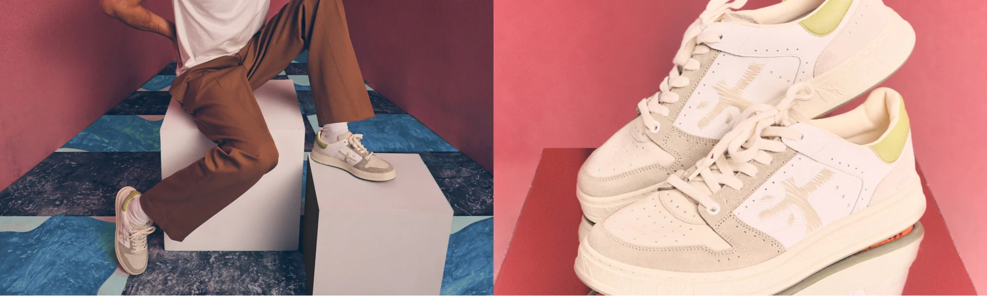 Embroidered mesh pumps with leather trim